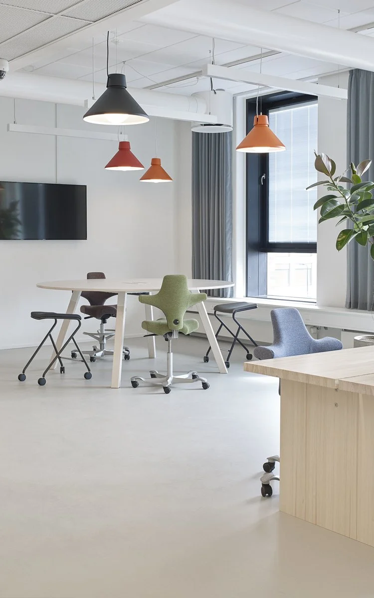 møderum, kantine, cafeer, reception, terrasser mv.2200 stk inventar – 65 forskellige leverandørerLevering: 2. kvartal, 2019Fakta