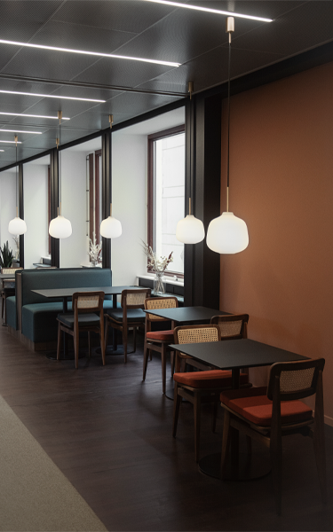Tapetcafe og Martela Best WorkplacesBankInvest flyttede i 2021 til et nyt domicil med historiske bygningsmæssige rammer, der krævede et design, som både kunne matche bygningerne og skabe fremtidens arbejdsplads for virksomheden.BankInvest valgte i 2021/22 at flytte fra et moderne byggeri i Nordhavn til nogle nye, fantastiske lokaler med historiske rammer beliggende i Bredgade. I hjertet af Frederiksstaden ønskede BankInvest med de nye lokaler at skabe en gennemført og tidløs indretning. Samtidig skulle lokalerne byde på et