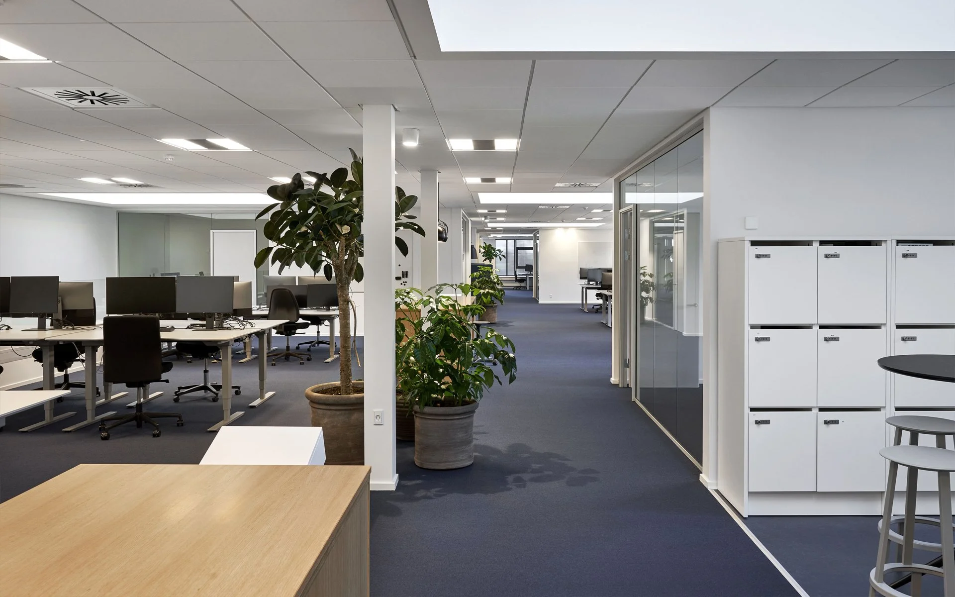 Til projektet bidrog vi med følgende ydelser:Oprettelse af swingspace (midlertidige kontorer) for medarbejdereLevering af alt løst inventar og tilbehør til domiciletRådgivning omkring og udarbejdelse af produkttypologiHåndtering af eksisterende inventar til genbrug, videresalg og genindvinding.Planlægning af montage og koordinering med andre leverandørerOphængning og el-tilslutning af stemningsbelysningDetailspecificering, produktion og levering af specialinventarFlytteplanlægning og fysisk flyt af genbrugsinventar, personale effekter, arkiver etc