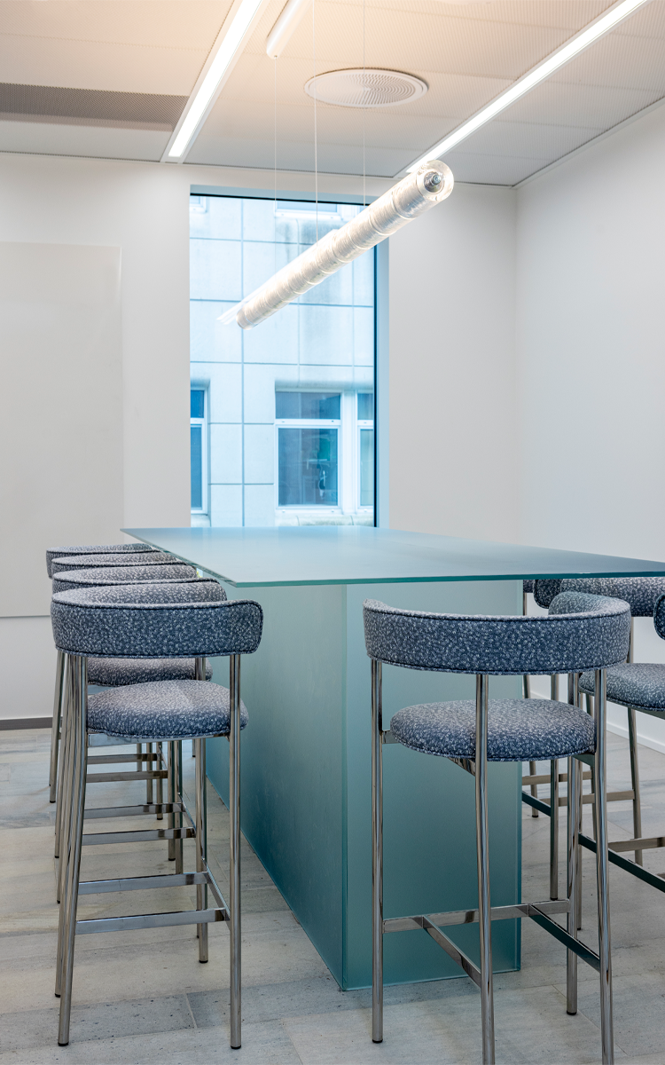 Laika RumdesignEn international biotech-virksomhed skulle udvide deres domicil med nye fællesområder for reception, kantine, mødecenter og et kundeoplevelsesområde. Samtidig var det også starten på en transformation af kontorområder til aktivitetsbaseret indretning. I samarbejde med kundens projektteam og den valgte designrådgiver stod Martela Best Workplaces for levering af alt løst inventar, specialinventar og skiltning.Første fase danner baggrund for en designlinje og en produkttypologi, der skal kunne bredes ud i alle de eksisterende domiciler, hvorfor grundighed og afprøvning var vigtigt. Projektet skulle også skabe begejstring og facilitere en Change Management-proces hos medarbejderne, hvorfor det var vigtigt at skabe et succesfuldt projekt inden for de økonomiske og tidsmæssige rammer med fokus på bæredygtige løsninger.Opgaven