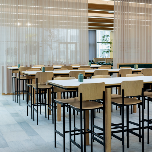 Arbejdsborde blev mindre, men med øget funktionalitet i form af skærmarme, strømudtag og indbygget trådløs oplader til mobiltelefon. Der var stor variation af produkter, materialer og farver i de forskellige møderum, med mange fuldpolstrede siddemøbler.I alt var der 5.500 stykker inventar i over 260 varianter fra mere end 35 forskellige producenter, hvoraf 72% havde en officiel livscykluscertificering.Laika Rumdesign og kundens projektgruppe har skabt et fremadskuende workplace-design, som vi har assisteret med at implementere.Brugernes opfattelse, oplevelse og brug af det nye workplace er den egentlige måling af projektets værdi og resultat. Feedback fra brugere, medarbejdersurvey og 100-dages evaluering viste en tydelig forbedring af medarbejdertilfredshed, mange positive tilkendegivelser og en højere tilstedeværelse.En velplanlagt og udført Change Managementproces var en vigtig del af projektets succes.
