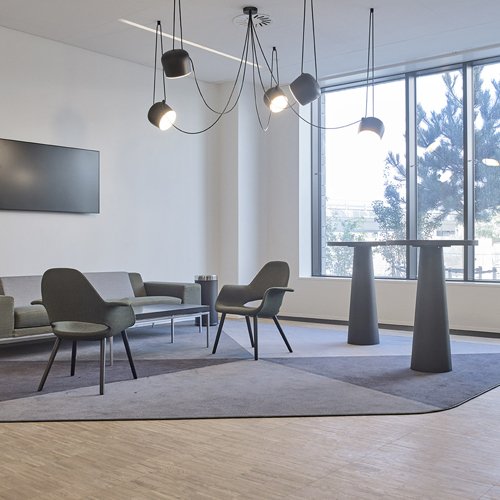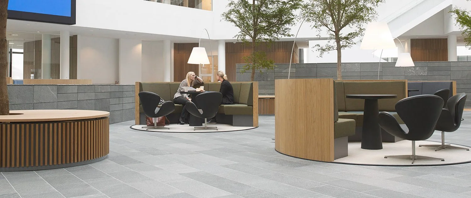 (arbejdspladser, mødelokaler, loungeområder, kantine mv)500 stykker genbrugsmøbler som blev renset og repareret