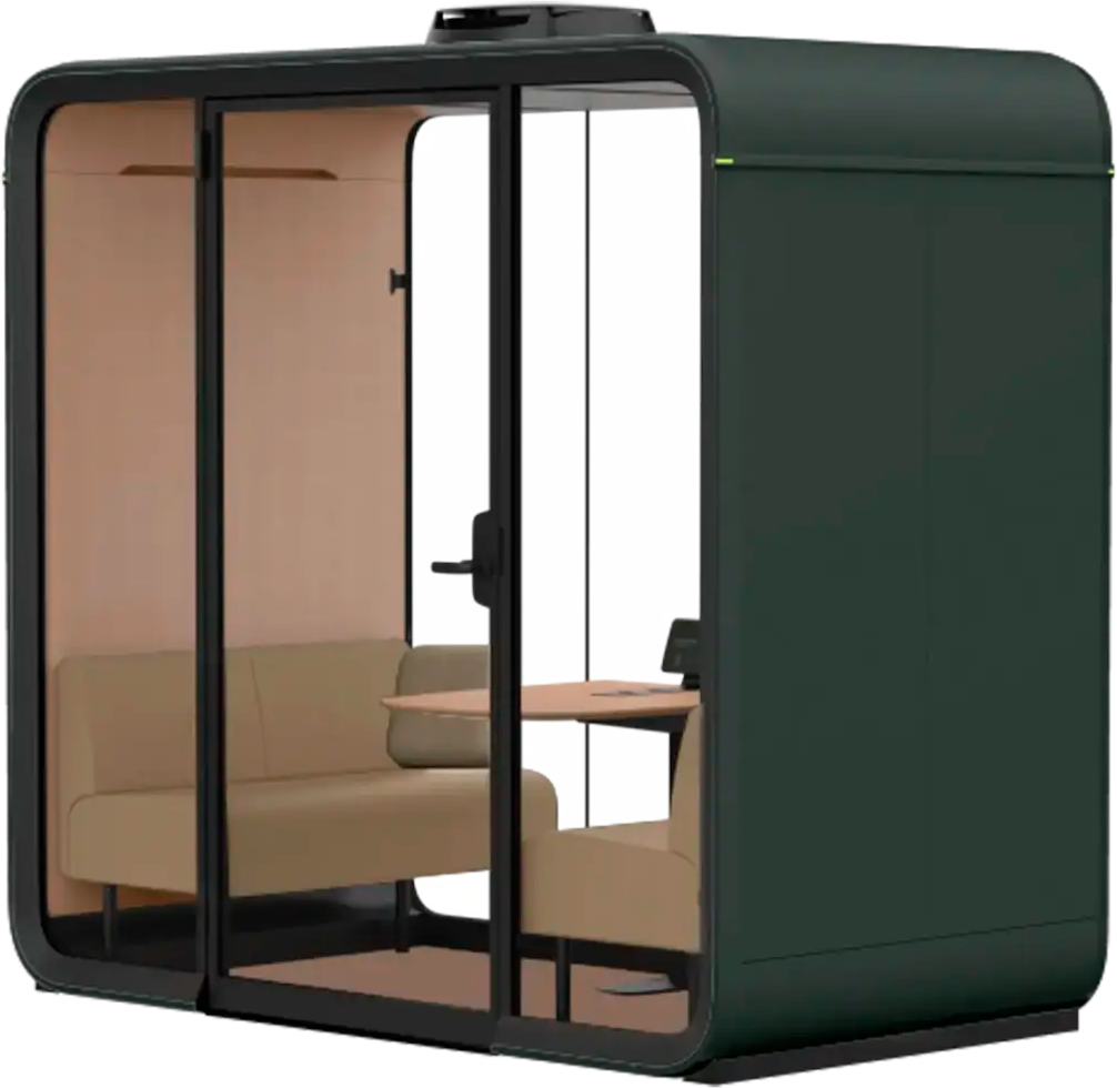 Pod Serien er designet til at bringe en fredelig atmosfære til sine omgivelser. Især på arbejdspladsen kan et fredeligt lydbillede give dig mulighed for at gøre store ting: at være kreativ og produktiv. Forskning viser, at ved at give stilhed og privatliv kan du forbedre medarbejdernes trivsel og forbedre præstationerne.PodBooth Meeting giver et stille, lydisoleret rum til møder med 2-6 personer. Telefonboksen er den perfekte løsning til et mobilt mødelokale til moderne kontorer. PodBooth Meeting er tilgængelig med eller uden møbler. Justerbar ventilation og belysning giver de bedst mulige mødeforhold.Pod Series